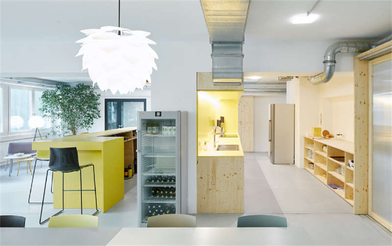 創(chuàng)始人創(chuàng)業(yè)公司是該空間的主要占用者,該空間設(shè)計(jì)為允許動態(tài)數(shù)量的固定辦公桌和靈活的協(xié)同工作座椅,分為幾個(gè)不同的區(qū)域。同時(shí)還有幾個(gè)不同的會議空間和一個(gè)帶酒吧和設(shè)備齊全的廚房的大型開放公共區(qū)域。