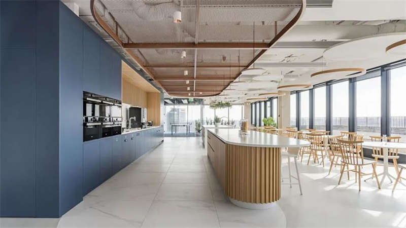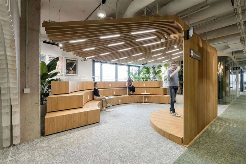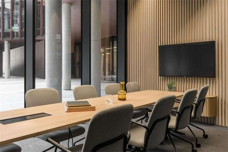 辦公室選擇了電動(dòng)可調(diào)的升降辦公桌,以滿足員工個(gè)性化的需求。為了改善工作區(qū)域的聲學(xué)效果,在工作站之間和燈具上安裝了聲學(xué)板,并采用了大量的織物窗簾,從而減少了辦公室內(nèi)的噪音和混響。此外,在會(huì)議室配置了頂尖的IT/AV系統(tǒng),從而將辦公室工作與遠(yuǎn)程工作緊密連接;安靜的聲學(xué)工作艙則配備了智能照明和高效通風(fēng)系統(tǒng)。