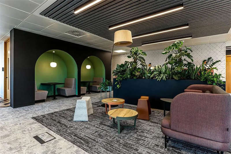 為了促進辦公室的協(xié)作文化,設計師創(chuàng)建了由“Societal社群、Analog模擬、Principle原則”三個概念啟發(fā)而來的鄰里社區(qū)模式。
