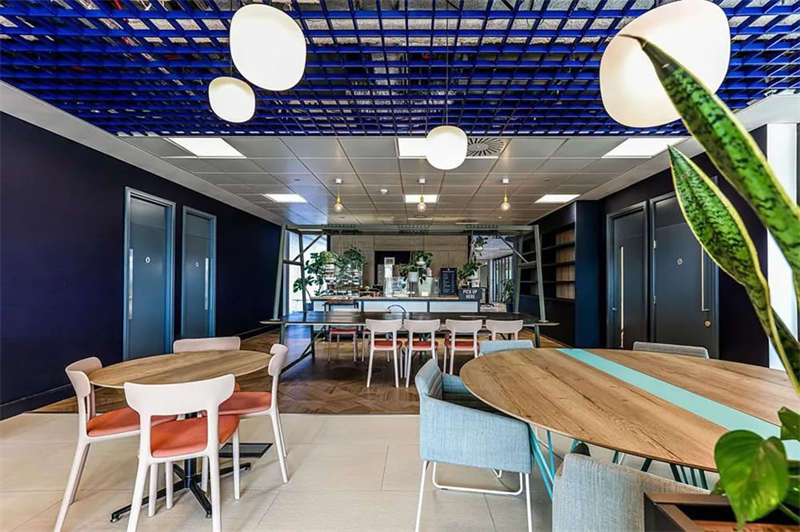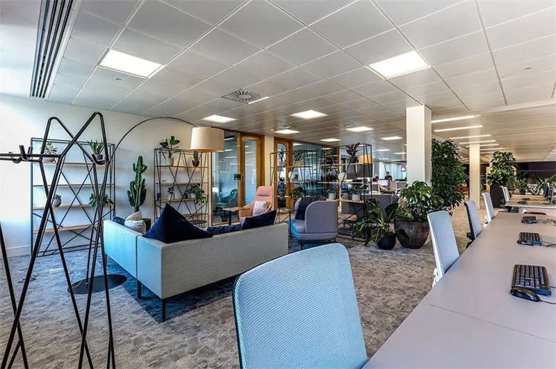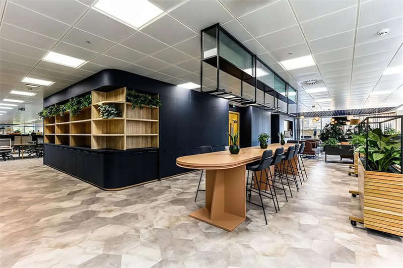 此番改造的一個重要主因是給到員工愿意回歸辦公室的理由。這意味著提升整體設施的實用性和美觀性,同時增加協(xié)作空間并整合遠程工作人員的需求。因此對當代前沿科技的投資成為關鍵要素。為了支持混合工作模式,設計公司在早期就任命了一名AV專家,以便可以通過應用程序或基于桌面的預訂系統(tǒng)預訂工作空間。同時,傳統(tǒng)工作站與可替代工作設施之間的界限也進一步擴大,平均(NIA室內(nèi)凈面積)比率為1:10。此外,之前辦公桌與員工1:1的比例也被新的1:1.6比例所取代。