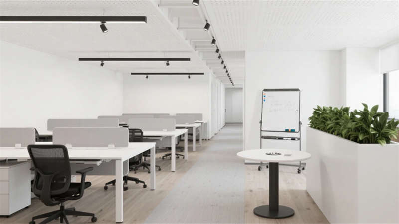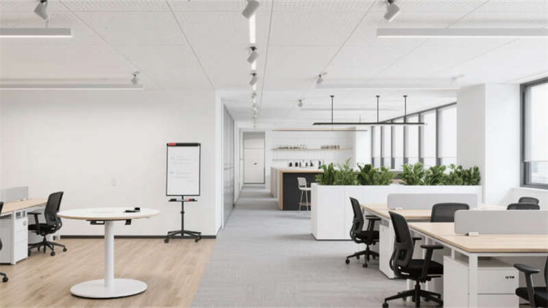 室內(nèi)空間延續(xù)外立面設計語言,企業(yè)大堂通過技術創(chuàng)新實現(xiàn)淺白大理石與木紋墻面的無縫拼接,懸浮式線性燈光系統(tǒng)可隨自然光線智能調(diào)節(jié)色溫。開放式辦公區(qū)配置智慧化模塊組合,可升降桌體與軌道射燈靈活適配多元場景,協(xié)作島集成無線充電與環(huán)境感知功能。高管辦公室采用智能霧化玻璃隔斷,實現(xiàn)隱私與通透的自由切換??萍紩h室搭載高清透明顯示系統(tǒng)與多聲道聲學設備,電動百葉簾與補光系統(tǒng)聯(lián)動打造智能會議環(huán)境。