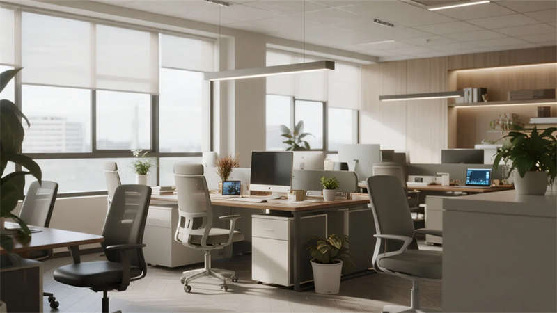 本設(shè)計(jì)以輕奢風(fēng)格為核心,打造一個(gè)優(yōu)雅而舒適的辦公環(huán)境。外觀采用現(xiàn)代建筑語(yǔ)言,玻璃幕墻與金屬細(xì)節(jié)相結(jié)合,彰顯高端氣質(zhì)。內(nèi)部空間注重細(xì)節(jié)與品質(zhì),接待區(qū)以大理石前臺(tái)和金屬裝飾營(yíng)造歡迎氛圍,開(kāi)放式辦公區(qū)布局靈活,配備簡(jiǎn)約家具和自然光元素,提升工作效率。會(huì)議室設(shè)計(jì)專業(yè)且智能,私人辦公室融合落地窗和 luxury 裝飾,提供靜謐工作空間。員工休息區(qū)與咖啡角注重舒適性,軟裝家具和溫馨 lighting 促進(jìn)放松與交流。走廊區(qū)域通過(guò)藝術(shù)墻面和 lighting 效果增強(qiáng)空間感,整體設(shè)計(jì)融合材質(zhì)對(duì)比與柔和色調(diào),營(yíng)造出精致而人性化的辦公體驗(yàn),強(qiáng)調(diào)美學(xué)與功能的平衡。