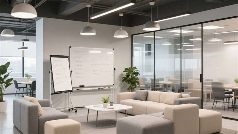 這個辦公室設計以現(xiàn)代簡約風格為核心,通過流暢線條和中性色調(diào),打造出一個和諧而高效的工作環(huán)境。整體布局強調(diào)開放性與功能性,功能區(qū)之間無縫銜接,利用玻璃隔斷和自然光,營造通透感。接待區(qū)以溫馨氛圍迎接訪客,開放辦公區(qū)促進團隊協(xié)作,會議室提供寧靜討論空間。休息區(qū)與茶水間則融入綠植元素,為員工提供放松角落,提升日常舒適度。經(jīng)理辦公室和專注區(qū)平衡了私密需求,協(xié)作空間鼓勵創(chuàng)意交流。設計注重人性化細節(jié),如柔和燈光和懸浮家具,減少視覺雜亂,同時強化生態(tài)理念。整個空間不僅美觀實用,還體現(xiàn)了對員工福祉的關懷,營造出積極的工作氛圍。蚌埠元素貫穿始終,展現(xiàn)地方特色與現(xiàn)代美學的融合,讓辦公環(huán)境成為靈感源泉。