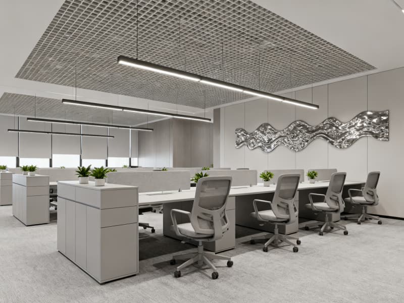 此外,設(shè)計(jì)注重人性化與科技感,采用人體工學(xué)家具、智能感應(yīng)設(shè)備、無(wú)線充電模塊等,提升員工辦公舒適度與工作效率,同時(shí)兼顧空間的安全性與整潔性,為企業(yè)打造一個(gè)適合長(zhǎng)期發(fā)展的優(yōu)質(zhì)辦公環(huán)境。