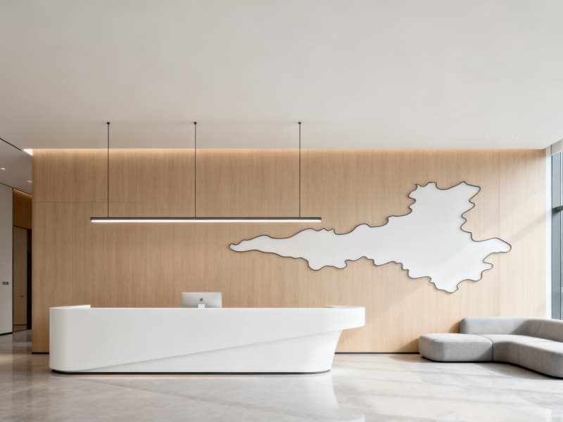 在功能分區(qū)上,合理劃分開(kāi)放辦公區(qū)、獨(dú)立辦公室、會(huì)議室、休閑茶水間等區(qū)域,既保證員工高效辦公,又滿足交流協(xié)作與休閑放松的需求。細(xì)節(jié)設(shè)計(jì)上,融入蚌埠淮河、龍子湖等地域元素,通過(guò)裝飾畫(huà)、背景墻圖案等形式呈現(xiàn),增強(qiáng)空間的地域認(rèn)同感與文化氛圍。?