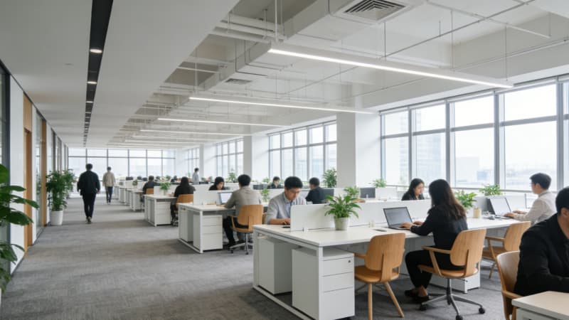 本案為蚌埠本土企業(yè)量身打造3000㎡全景式辦公室,以“地域文脈+現(xiàn)代辦公”為核心,將蚌埠淮河文化的溫婉底蘊(yùn)與當(dāng)代極簡美學(xué)相融。大樓外觀采用玻璃幕墻搭配淺灰金屬線條,簡約大氣中透著企業(yè)實(shí)力;前臺以溫潤石材與局部蚌殼紋理裝飾,暗藏地域符號。開放式辦公區(qū)規(guī)劃3個(gè)功能分區(qū),兼顧協(xié)作與私密,通透采光搭配靈活工位,適配多元辦公需求。經(jīng)理辦公室以沉穩(wěn)色系為主,嵌入定制收納系統(tǒng),平衡高效辦公與舒適體驗(yàn);總裁辦公室則融入輕奢元素,獨(dú)立茶歇區(qū)與全景落地窗結(jié)合,彰顯格局。會議室配備智能會議系統(tǒng),靈活切換研討、匯報(bào)等模式。整體設(shè)計(jì)既滿足3000㎡空間的功能分區(qū)合理性,又以細(xì)節(jié)傳遞蚌埠地域特質(zhì),為企業(yè)打造兼具實(shí)用性與品牌調(diào)性的辦公主場。