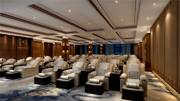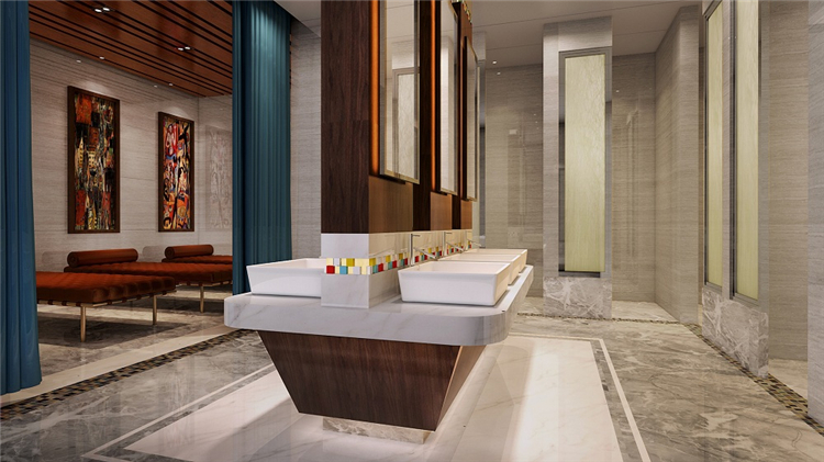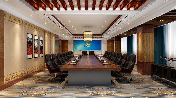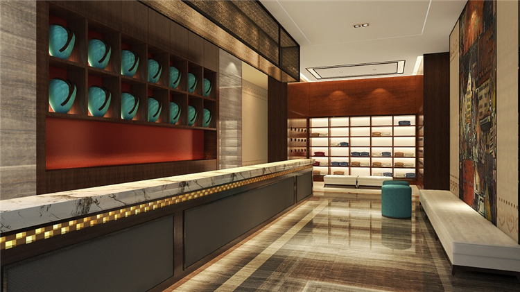 設(shè)計(jì)師同時(shí)考慮到地域民族文化和功能實(shí)用性,結(jié)合現(xiàn)代簡約與傳統(tǒng)藏式風(fēng)格,為往來的游客提供一個(gè)放松休憩的完美場(chǎng)所。設(shè)計(jì)師主要運(yùn)用藏藍(lán)、金黃、喇嘛紅等濃重色彩進(jìn)行搭配,靈感既來自于藏族傳統(tǒng)文化及宗教藝術(shù),也來自于雪域高原山高天藍(lán)水長花艷的自然景觀。借用柱網(wǎng)結(jié)構(gòu)、幾何紋路、吉祥花等藏式建筑形式和圖案進(jìn)行裝飾和點(diǎn)綴,但將繁復(fù)的式樣盡量精簡平面化,取其古樸、神奇、粗獷的神韻,表達(dá)一種平衡、對(duì)比、和諧統(tǒng)一的構(gòu)圖規(guī)律和審美思想。