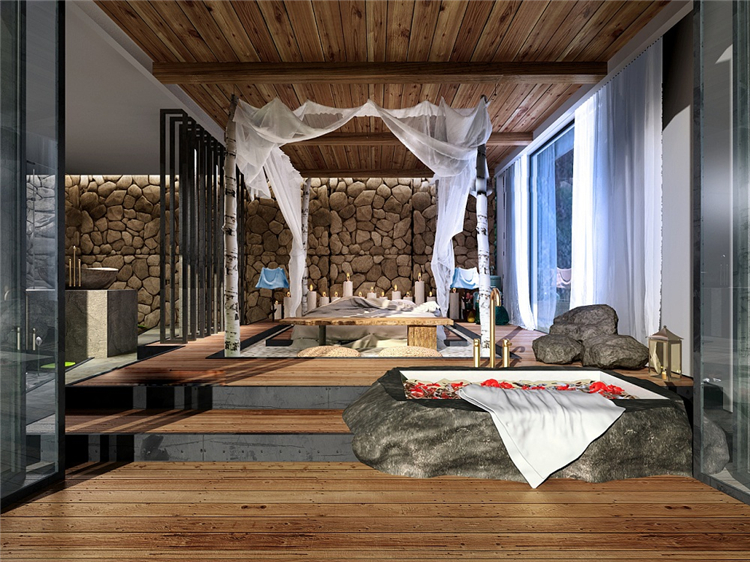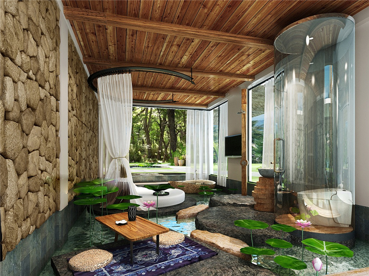 本案民宿度假酒店采用東南亞裝飾設計風格
