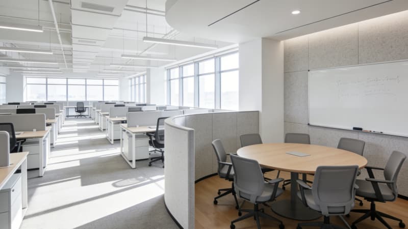 合肥6000㎡辦公樓設(shè)計,以“高效、健康、智能”為核心,打造適配企業(yè)全發(fā)展階段的辦公空間。采用“40%獨立辦公+30%開放工位+30%協(xié)作休閑”科學(xué)布局,最大化利用每一寸空間。