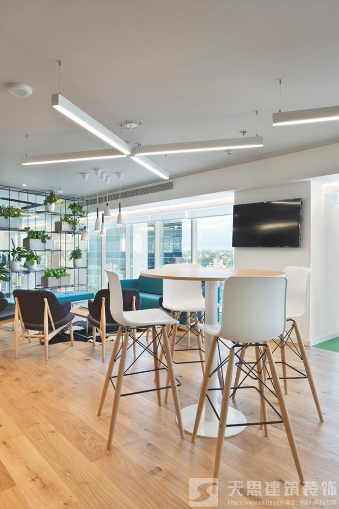 茶水間的設(shè)計(jì):設(shè)計(jì)師在設(shè)計(jì)的時(shí)候,將其安置在一個(gè)獨(dú)立的空間之中,此處既有采光的照射,同時(shí)也有溫馨、舒適的空間氛圍,設(shè)計(jì)師希望為員工打造一個(gè)無壓力的空間,在此處員工可以放空自己,讓自己在忙碌中停留下來,休息之后充滿精力的在此出發(fā),因?yàn)樾菹⒕褪菫榱讼乱淮蔚拈_始。
