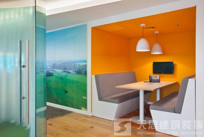 會(huì)議室的設(shè)計(jì):設(shè)計(jì)師在設(shè)計(jì)的時(shí)候,將其安置在靠近窗戶的空間區(qū)域中,在設(shè)計(jì)師看來會(huì)議是企業(yè)發(fā)展所不可替的,但是設(shè)計(jì)師希望可以改變會(huì)議室給人枯燥、無味的感覺,故此設(shè)計(jì)師將采光、室外景色通過設(shè)計(jì)的手法將其引入室內(nèi),讓會(huì)議變得有趣起來。