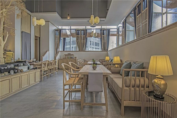 茶藝館的空間設(shè)計(jì)要與其總體設(shè)計(jì)風(fēng)格相匹配。在空間布置上可通過虛的手法遮擋視線,似隔非隔,隔中有透,實(shí)中有虛。例如利用布慢、漏墻、珠簾、屏風(fēng)、竹籬、木柵等緩沖通道與視線;又如,利用通道的回繞曲折相通,轉(zhuǎn)身回眸處別有一方天地。適當(dāng)?shù)姆指暨€可滿足部分客人不想被打擾的心理,這就是所謂的"園必隔"。