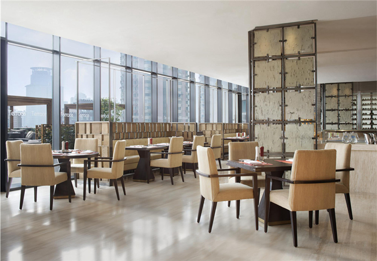 大開(kāi)大合的空間設(shè)計(jì),鏤空的隔斷,利用室外光線與室內(nèi)色彩的融合設(shè)計(jì),增加空間特有的色彩感,讓大自然的光線透過(guò)重重障礙,使人心情愉悅、悠然自得;室內(nèi)空間與室外空相得益彰,集合空間形態(tài)、藝術(shù)形態(tài)、造型設(shè)計(jì)等,相互依存,緊密結(jié)合,透過(guò)視覺(jué)的沖擊,在大腦中形成美好的記憶和體驗(yàn)感。