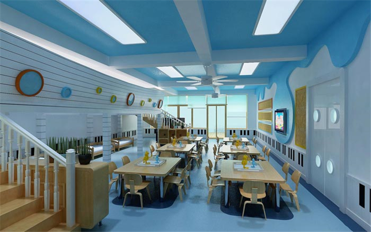 就餐區(qū)的設(shè)計:在這里孩子們將會享受到美味的佳肴,一個班級的孩子們坐在一起用餐,可以培養(yǎng)彼此之間的默契,在就餐結(jié)束之后,孩子們可以幫忙收拾餐具,這是要培養(yǎng)孩子動手的能力,在一切都結(jié)束之后,孩子們可以坐在一起看自己喜歡的動畫片。