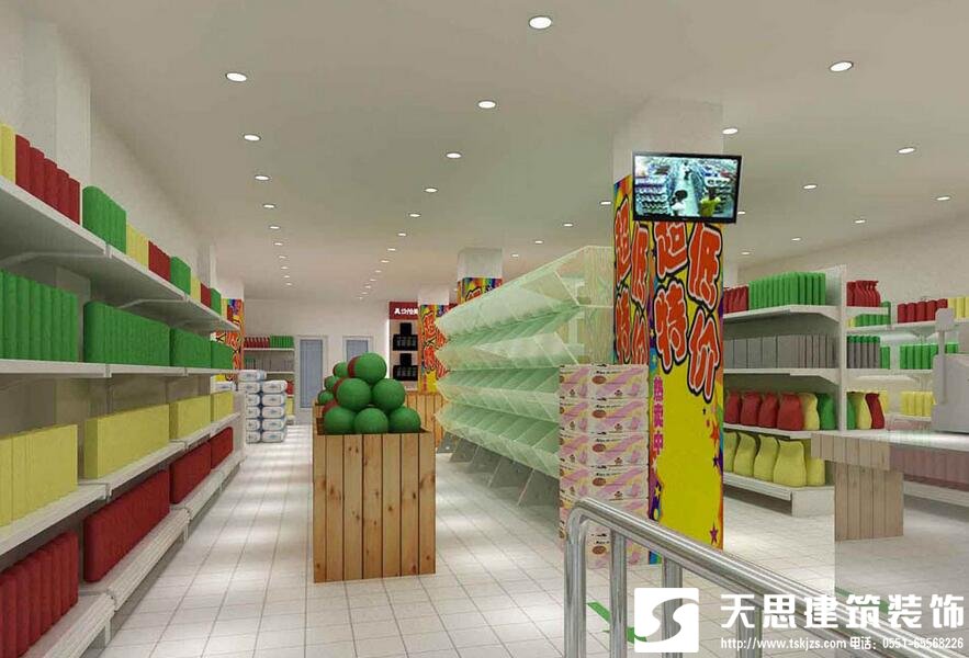 便利店對(duì)店鋪層高的要求一般在3米以上,但由于所選擇的店面多數(shù)處于底層,天花板下多數(shù)有下水管、電線(xiàn)管、消防管等管道,這時(shí)不要安裝吊頂天棚將這些管道隔離,只要這些管道粉刷成純白色,并將光源置于管道之下即可,這樣既可以保證商店的空間,又可以節(jié)省費(fèi)用。