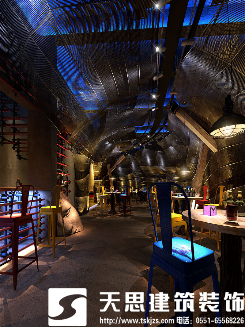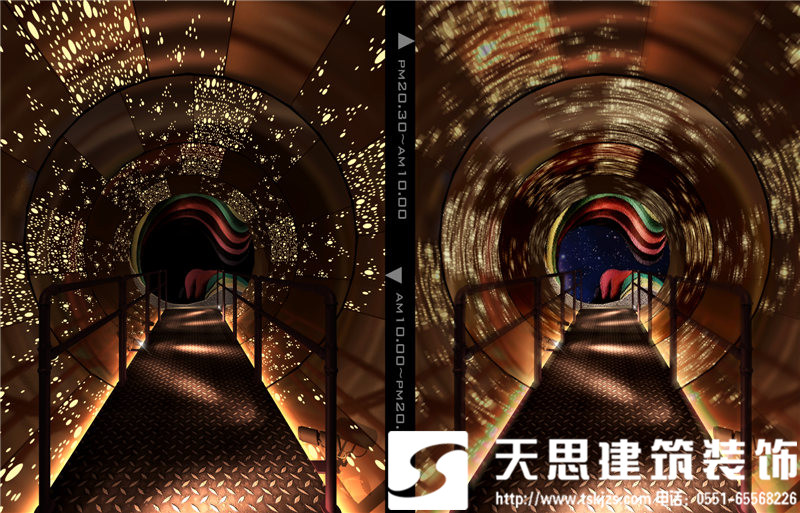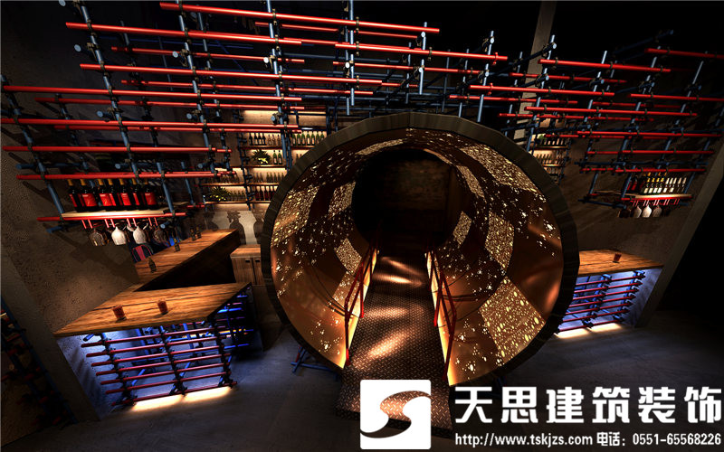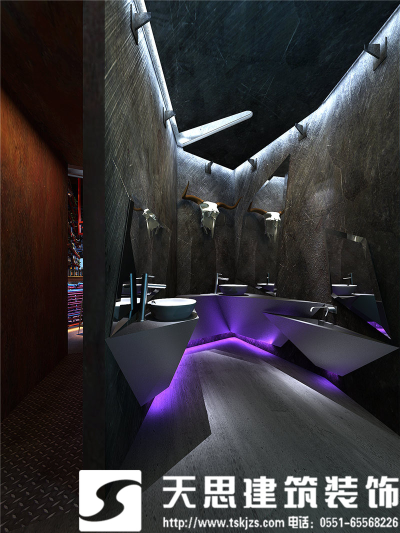 小型吧凳簡(jiǎn)單時(shí)尚,自然隨意。墻面勾勒的紋理線條,讓空間藝術(shù)感爆棚。地下通道仿若一個(gè)旋轉(zhuǎn)型的空間隧道,神秘浪漫。鐵網(wǎng)拱形口又是一種最簡(jiǎn)單的表達(dá)。洗手間,金屬質(zhì)感的墻面和藝術(shù)品裝飾,簡(jiǎn)潔時(shí)尚。鋁制洗手臺(tái)搭配淡淡的紫色光源,美輪美奐。