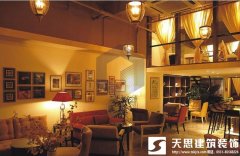 咖啡廳地面以各種瓷磚和復合木地板為首選材料,咖啡廳的墻面材料以內墻乳膠漆較為普遍,在燈光處理的材料方面注意把握細節(jié),使得營造出安靜、高雅、休閑的環(huán)境。