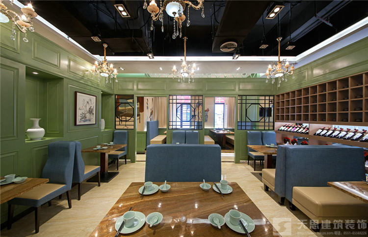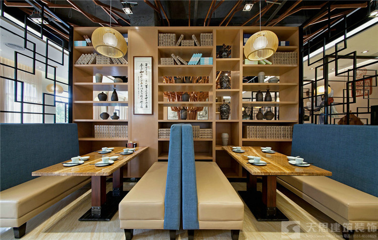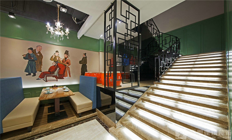 夜宴餐廳以五代十國時南唐畫家顧閎中的作品《韓熙載夜宴圖》為創(chuàng)作靈感來源,通過“聽彈琵琶”,“集體觀舞”,“中間休息”,“各自賞月”。“依依惜別”,等五個章節(jié)來還原當時的盛況,通過畫中設計元素提煉,及色彩的組合,達到客戶用餐的體驗感。