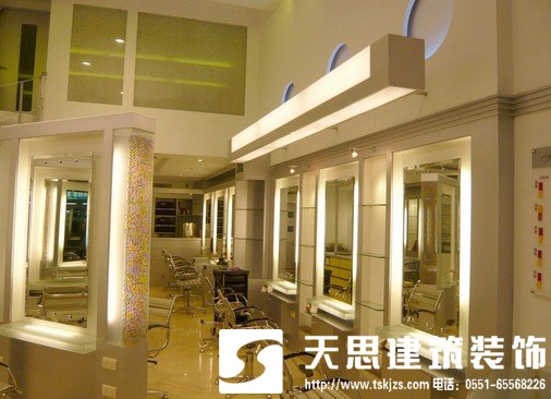 美發(fā)區(qū)是美發(fā)店裝修的重中之重。在保證干凈整潔的基礎(chǔ)上,給簡單的鏡子和椅子組合而成的美發(fā)區(qū)增添特色。把美發(fā)區(qū)的鏡子打破傳統(tǒng)的四方形形狀,安上扇形的鏡子,讓人眼前一亮。鏡子旁邊的墻壁也不能忽視,可以貼上一些有趣的圖案不顯單調(diào)。燙染區(qū)以繽紛的色彩,簡潔的風(fēng)格將色彩最大化,以顯示多種顏色與風(fēng)格,設(shè)計以不銹鋼與玻璃突出其美感。燙染區(qū)的色吧造型應(yīng)以時尚、前衛(wèi)、強烈色彩為主導(dǎo)。洗頭區(qū)及沖水區(qū)應(yīng)以干凈明快為主題來設(shè)計,墻面用噴漆玻璃來做裝飾,讓顧客對本店感受到潔凈的形象。產(chǎn)品區(qū)應(yīng)該分洗護產(chǎn)品及燙染產(chǎn)品,而且產(chǎn)品展示的位置應(yīng)該明確區(qū)分開來。
