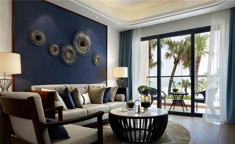 對(duì)于海邊的酒店套房,最好選與大海相關(guān)的裝修這套房間裝修改用藍(lán)色元素落地窗外就是大海,迎著海風(fēng)瞭望海邊,整體裝修帶有地方特色,軟裝擺設(shè)則偏簡(jiǎn)潔大方,從視覺(jué)上給人一種舒服的感受。