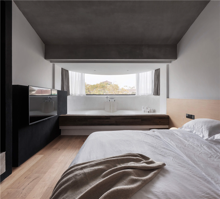 設(shè)計師針對民宿的入住功能一共設(shè)計了八間不同布置風(fēng)格的客房,將入住功能布置與二三四層,重新規(guī)劃房間平面,擴(kuò)大每一個房間的衛(wèi)生間,增加落地窗,以此增加舒適度,同時為入住的客人創(chuàng)造趣味性的體驗。在每一層中間以中島作為過渡,對應(yīng)每一個房間,即協(xié)調(diào)客房的動線關(guān)系,又給每一位入客人提供便捷的交流空間。