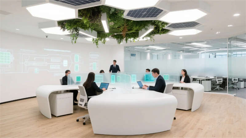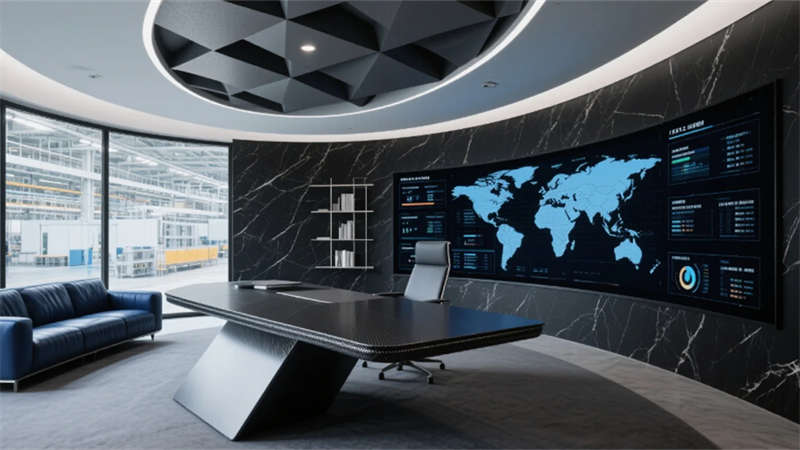 開(kāi)放式辦公區(qū)打破傳統(tǒng)壁壘,蜂窩狀工位與懸浮綠植裝置詮釋靈動(dòng)協(xié)作,透明屏幕上的數(shù)據(jù)流與玻璃隔斷投影的生產(chǎn)流程圖虛實(shí)相映??偛每臻g則如懸浮的智慧中樞,弧形落地窗將車間全景化作動(dòng)態(tài)壁畫(huà),金屬與大理石的碰撞間,流淌著決策與創(chuàng)新的電流。智能倉(cāng)儲(chǔ)區(qū)立體貨架的金屬骨骼間,無(wú)人機(jī)如蜂鳥(niǎo)般掠過(guò)貨品,天光與電子標(biāo)簽的光斑在環(huán)氧地面上跳動(dòng)著數(shù)字時(shí)代的韻律。