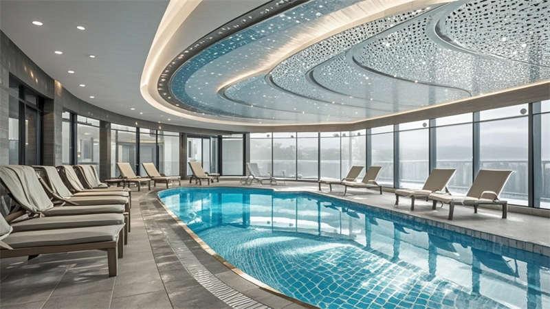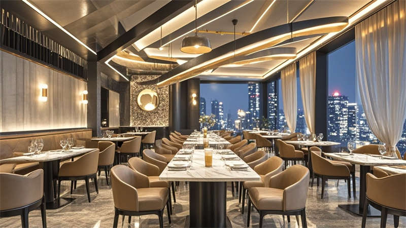 本2000平現(xiàn)代簡約風格酒店設計以'城市綠洲'為核心理念,通過流線型空間布局構(gòu)建高效動線。大堂采用懸浮式水晶燈與淺灰大理石地面形成視覺焦點,金屬與木質(zhì)的冷暖對比提升空間質(zhì)感??头繀^(qū)運用深藍與淺灰的撞色搭配,配合智能照明系統(tǒng)實現(xiàn)多場景模式切換。公共區(qū)域大量運用無框玻璃隔斷,保持空間通透性的同時實現(xiàn)功能分區(qū)。色彩體系以米白為基底,點綴深胡桃木與香檳金,局部運用幾何紋樣增強設計感。材料選擇注重環(huán)保與耐用性,石材、金屬與吸音材質(zhì)的組合兼顧美觀與實用。燈光設計采用多層次照明系統(tǒng),筒燈、燈帶與裝飾照明相結(jié)合,營造舒適光環(huán)境。各功能區(qū)域通過統(tǒng)一的材質(zhì)語言和色彩邏輯保持整體協(xié)調(diào),同時根據(jù)不同使用需求進行個性化設計,如會議室配備移動隔斷實現(xiàn)靈活分隔,健身中心采用防滑橡膠地板等專業(yè)處理
