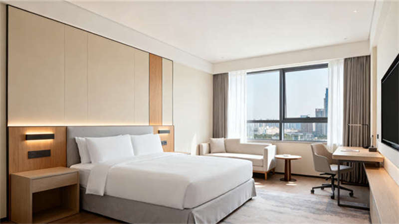 外觀設(shè)計摒棄繁雜裝飾,采用簡潔的線條與溫潤的材質(zhì)搭配,既展現(xiàn)出酒店的大氣質(zhì)感,又融入了對周邊環(huán)境的適配性,避免過于突兀的視覺沖擊。室內(nèi)部分,大堂以開闊的空間布局為基礎(chǔ),通過柔和的燈光與自然材質(zhì)的運用,營造出溫馨且具格調(diào)的接待氛圍,讓賓客步入時便能感受到舒適感;客房聚焦居住的實用性與舒適度,軟裝搭配注重色彩的協(xié)調(diào),家具選型兼顧美觀與功能性,為賓客打造休憩的理想空間;餐廳設(shè)計則圍繞用餐體驗展開,燈光與餐桌布局相互配合,營造出適宜聚餐或獨處的用餐氛圍;會議室注重空間的功能性,合理的桌椅擺放與完善的配套設(shè)計,滿足不同會議場景的需求;健身房以簡潔明快的風格為主,確保運動空間的通透感,讓賓客在運動時保持愉悅心情;游泳池周邊則通過軟裝與燈光的搭配,營造出放松愜意的氛圍,為賓客提供休閑放松的好去處。整體設(shè)計始終以提升賓客體驗為核心,讓每個空間既具自身特色,又能融入整體風格之中。