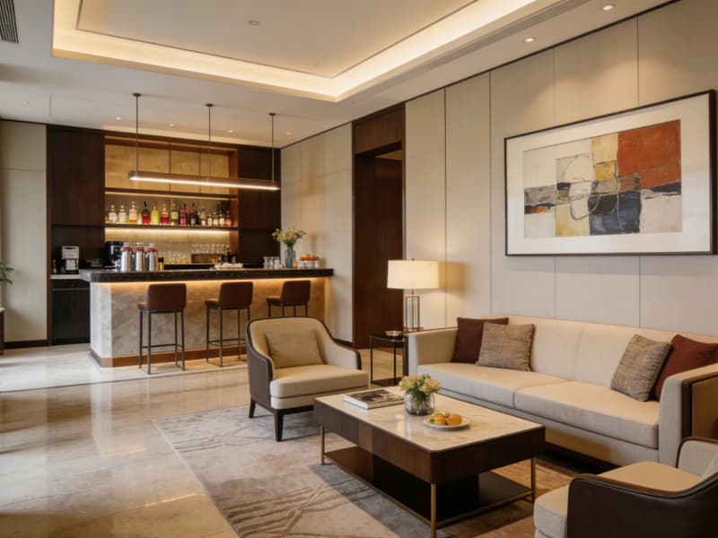 五層為特色配套層,設(shè)有行政酒廊、健身房與SPA區(qū)。行政酒廊提供專屬服務(wù),健身房配備先進器材,SPA區(qū)以自然色調(diào)為主,搭配舒緩音樂,讓客人放松身心。