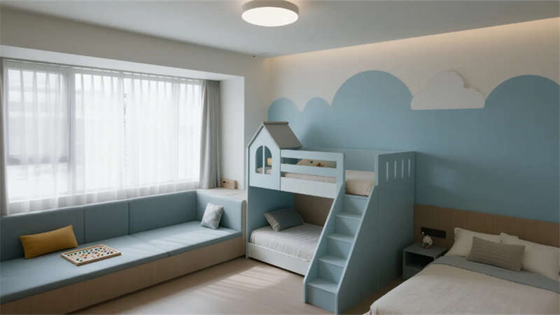 公共區(qū)域強調(diào)功能與美學(xué)的平衡:開放式游樂區(qū)釋放孩子天性,閱讀角的樹洞書架激發(fā)想象力,手工坊的彩虹收納系統(tǒng)培養(yǎng)創(chuàng)造力。戶外庭院融入沙坑與綠植,讓自然成為游戲場;夜晚的星空影音室則轉(zhuǎn)為家庭溫馨劇場。整體設(shè)計通過流動的空間布局,讓家長與孩子在簡約美學(xué)中共享親密時光,重新定義合肥親子度假的體驗方式。