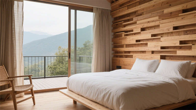 私密客房延續(xù)整體風(fēng)格,床具與家具均選用簡約線條的原木款式,搭配淺灰色床品與局部的自然織物,營造出松弛的休憩環(huán)境。細(xì)節(jié)處,墻面裝飾以天然石材切片與手工陶藝,地面鋪設(shè)防滑耐磨的原木紋地板,既保證實(shí)用功能,又強(qiáng)化了自然質(zhì)感。整個設(shè)計(jì)沒有多余的繁復(fù)裝飾,而是通過材質(zhì)的碰撞、光影的變化與色彩的協(xié)調(diào),讓每一處空間都傳遞出 “歸于本真” 的居住理念,為入住者提供遠(yuǎn)離喧囂、親近自然的休憩體驗(yàn)。