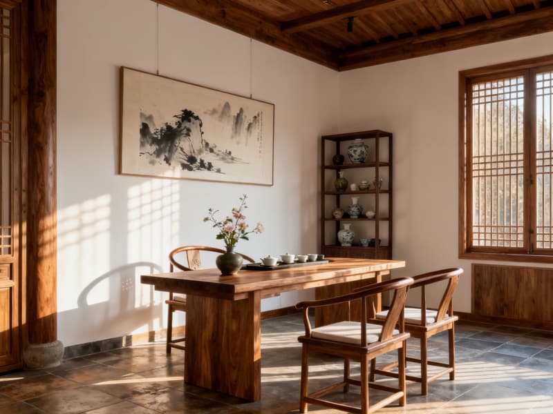 本設計以中式新古典風格為核心,為合肥民宿勾勒出兼具古韻與雅致的居住空間。外觀設計融入傳統(tǒng)建筑的對稱美學,青瓦與木構(gòu)相映,清晨柔光灑落時,墻面與門窗的線條更顯溫潤,搭配門前錯落的綠植,悄然營造出清幽靜謐的氛圍,既保留中式韻味,又不失現(xiàn)代居住的舒適感。?