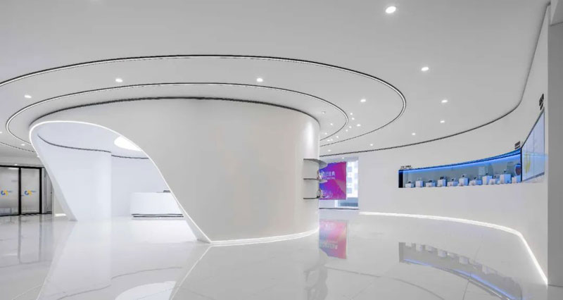 從踏入門廳開始,就劃定了宇宙視界,大廳以天花曲線燈帶統(tǒng)籌整體空間關(guān)系,異形包裹的空間內(nèi),橢圓形發(fā)光燈膜在營(yíng)造時(shí)空感的同時(shí)輔助自然光線帶來尤為舒適的光照感為了將空間利用率達(dá)到最大。