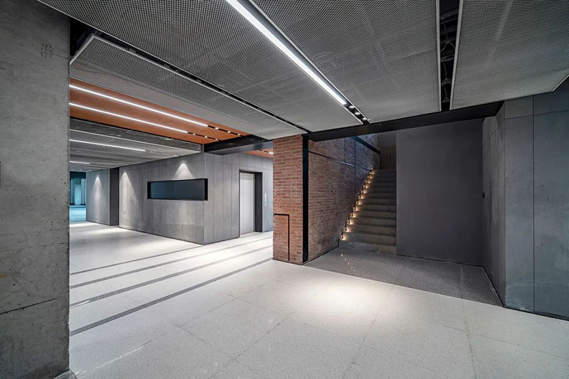 使用材料多以粗獷的質(zhì)感呈現(xiàn),水泥漆、灰泥、銹鋼板、金屬網(wǎng)、水泥板,還有裸露的混凝土,表現(xiàn)出工業(yè)建筑豪放的質(zhì)感。奔放、濃重、豁達(dá),形成室內(nèi)公共空間的性格。