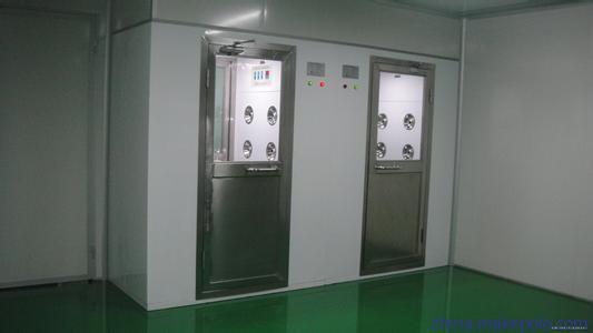 風淋室是一種通用性較強的局部凈化設備,安裝于潔凈室與非潔凈室之間。當人與貨物要進入潔凈區(qū)時需經(jīng)風淋室吹淋,其吹出的潔凈空氣可去除人與貨物所攜帶的塵埃,能有效的阻斷或減少塵源進入潔凈區(qū)。風淋室/貨淋室的前后兩道門為電子互鎖,又可起到氣閘的作用,阻止未凈化的空氣進入潔凈區(qū)域。