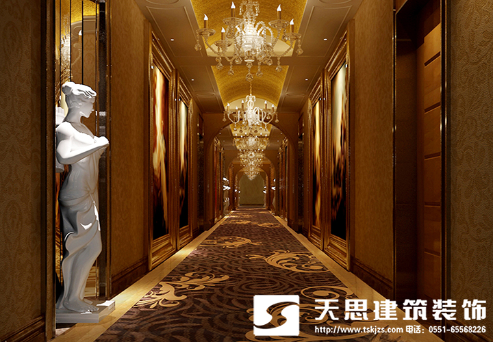 合肥金色年華高級會所裝修設計可謂是金碧輝煌,高貴典雅?,F(xiàn)代與歐式相結合,舒適時尚與高貴雅致相融合,體現(xiàn)出我們天思裝飾設計師的專業(yè)性,無論是從會所的整個布局上,還是軟裝的搭配上,都是無與倫比的精致高貴。整個高級會所的裝修設計大氣尊貴,既滿足會所的形式要求又符合生活的真實需要。