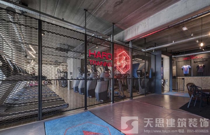 Metabolik作為新一代健身俱樂部,空間里氣氛很暗,設計師大量使用混凝土,焊接的原材料,膨脹或穿孔的金屬,營造了一種工業(yè)的氛圍。
