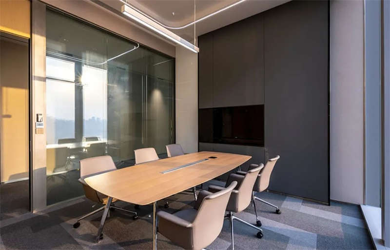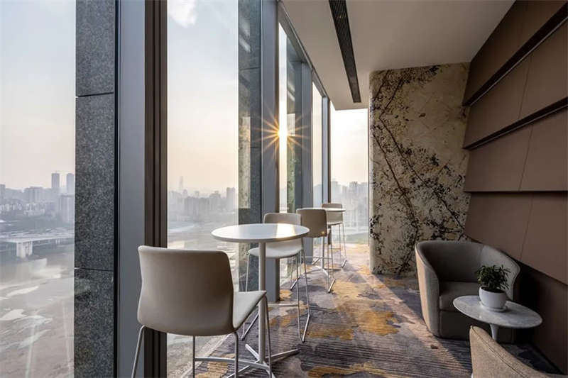 此辦公場所融合行業(yè)范式、藝術、辦公、會客和休閑功能,豐富的城市景觀與奢華的家具用材將空間美學統(tǒng)一起來,落地窗獲得更多明亮場域,空間通透舒朗,客戶進入空間能感受到簡潔明亮的氛圍。
