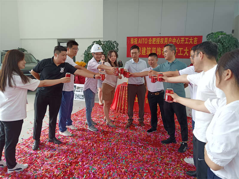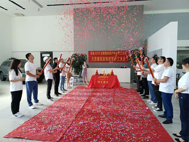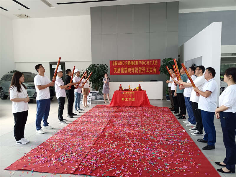 2022年8月5日,我們又迎來了新項目的開工,在這里安徽天思裝飾全體員工恭賀AITO合肥授權用戶體驗中心裝修工程開工大吉!開工儀式于項目現(xiàn)場隆重舉行。現(xiàn)場禮花飛舞,開工錘聲音響徹工地每一個角落,讓我們再一次恭祝AITO合肥授權用戶體驗中心開工大吉!