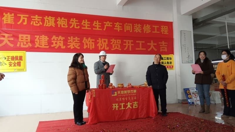 今日上午,安徽天思建筑裝飾為崔萬志旗袍1300平方米廠房隆重舉辦開工儀式。