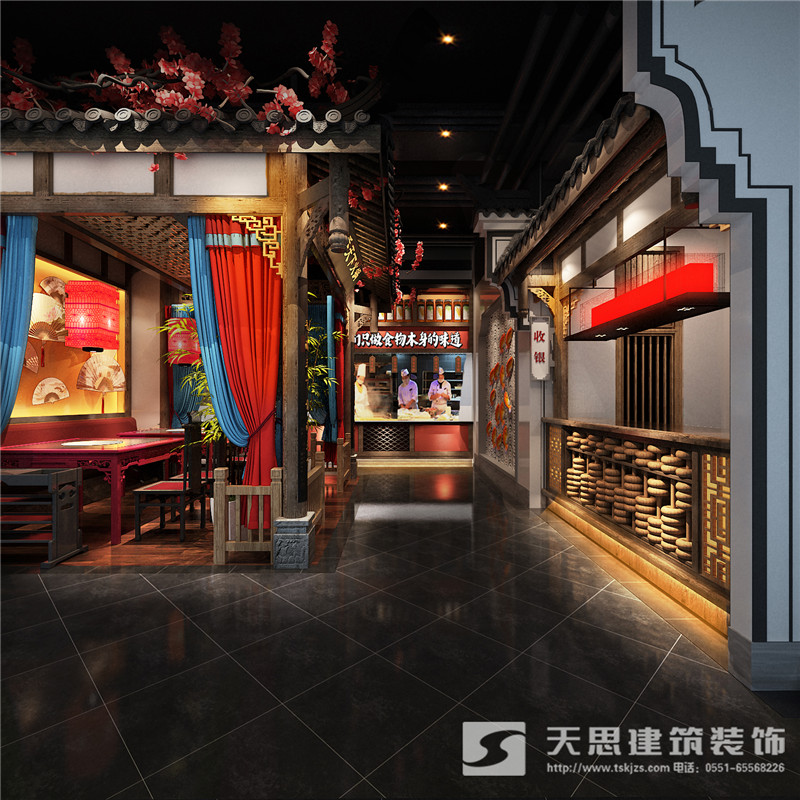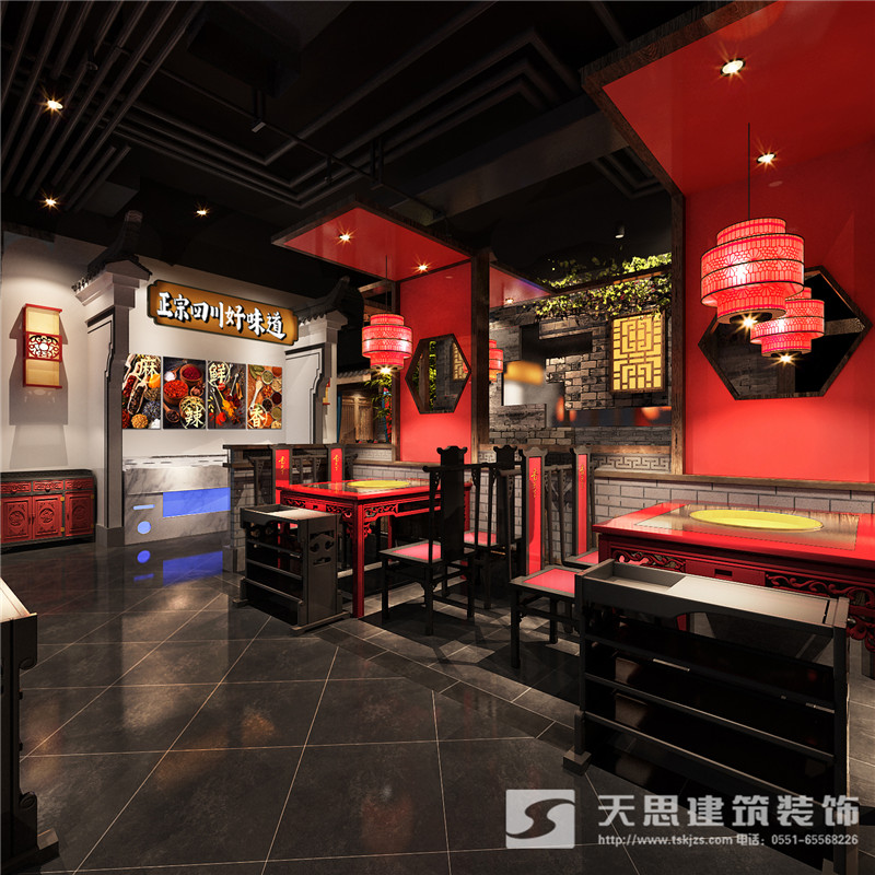 本次為合肥香天下火鍋店分店徽淮南店裝修設(shè)計(jì)效果,在本次火鍋店設(shè)計(jì)中,設(shè)計(jì)師采用新中式做為空間設(shè)計(jì)風(fēng)格,設(shè)計(jì)師希望讓客戶在這里感受到不一樣的氛圍。