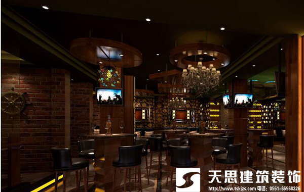 合肥天思裝飾工程有限公司是一家專業(yè)從事酒吧裝修、休閑會所裝修、網(wǎng)吧裝修等各種場所裝修設(shè)計(jì)施工。我們致力于為每個(gè)客戶打造完美空間。酒吧越來越受到人們的重視。越來越多地出現(xiàn)中國都市的一個(gè)個(gè)角落。酒吧品種多多,酒吧的情調(diào)迷人,且不乏激情,它成為青年人的天下,更是黑夜不歸的一種默許。酒吧的興起與紅火已經(jīng)成為了當(dāng)今時(shí)代不可否認(rèn)的事實(shí)。因此對于酒吧裝修的品味也在不斷提高著。今天就帶大家看看幾個(gè)酒吧裝修的效果圖。