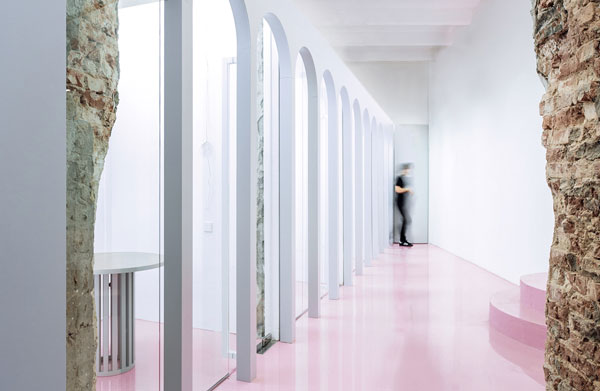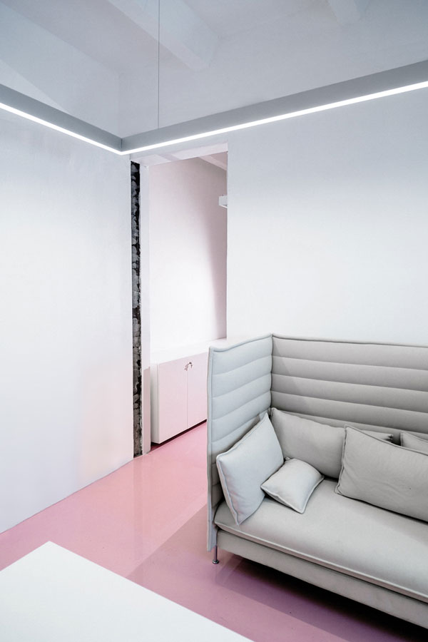 下面這個(gè)粉嫩嫩的辦公空間是NGRS獵頭公司位于莫斯科市中心的總部,鄰近紅場和克里姆林宮。該辦公室室內(nèi)設(shè)計(jì)采用了單一的白色色調(diào),并在地板上大面積的使用了柔和溫馨的粉色。該公司的職員90%是女性,這個(gè)萌發(fā)少女心的色彩方案以及半圓形臺(tái)階及拱門的設(shè)計(jì)得到了職員的一致好評(píng)。