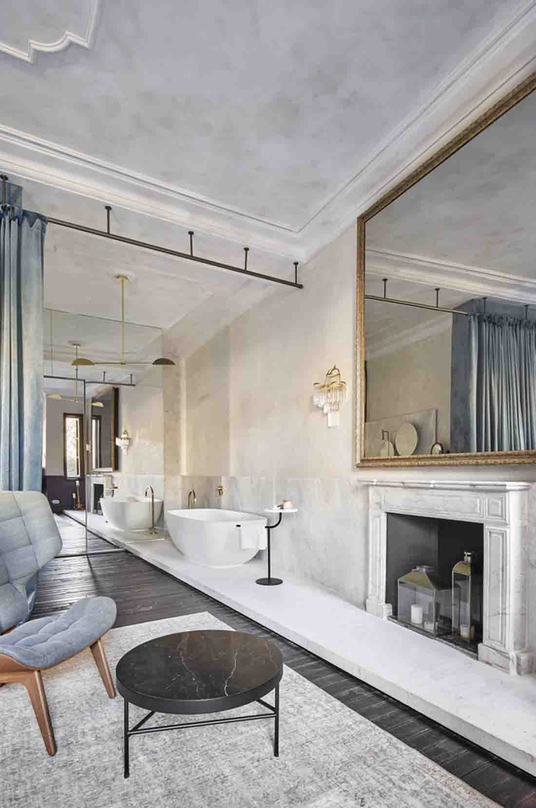 設(shè)計師旨在喚起比酒店更多的參觀房屋的經(jīng)歷。因此,客戶不是在酒店接待處而是在房子的門廳見面;找到的餐廳而不是餐廳,而是找到了居民用餐室,這些房間和客廳就像您在老房子中找到的那樣。該項目精心保留了建筑物中浪漫的氛圍,并與不同時期的干預(yù)和元素進行了有意識的對比。這是對現(xiàn)有百年建筑雜交的尊重,它保留了過去的痕跡,并避免了房屋從未擁有過的輝煌過去的錯誤恢復(fù)。
