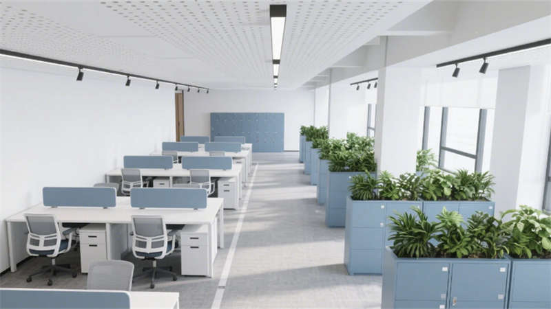 人性化細節(jié)貫穿各區(qū)域:電梯廳導向系統(tǒng)與隱藏式消防設施實現(xiàn)功能隱形化,員工休息區(qū)混搭工業(yè)風吧臺與暖光沙發(fā),搭配咖啡機與綠植墻釋放壓力。設計同步植入環(huán)保理念,采用低能耗照明系統(tǒng)、空氣監(jiān)測模塊及可回收建材,構建健康可持續(xù)的辦公生態(tài),傳遞企業(yè)面向未來的品牌價值觀。