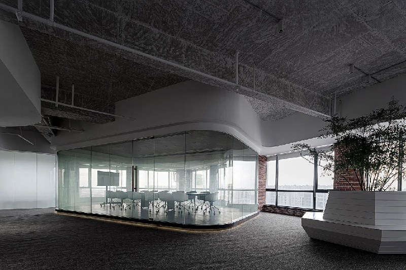 不同于以往辦公一味追求的對稱藝術(shù),經(jīng)由橫平豎直的線條勾勒,本案布局在硬朗的輪廓下規(guī)整有序,又與弧形彎道相輔相成,運(yùn)用圓角規(guī)避各處尖銳轉(zhuǎn)折,柔和視覺。