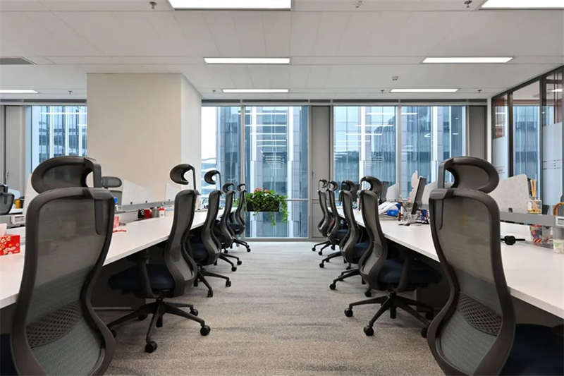 員工區(qū)部份選用了電動(dòng)可調(diào)的升降辦公桌,以滿足員工個(gè)性化的需求,白灰色的家具搭配,混搭淺木色的休閑洽談區(qū)域,地面選用流線款長(zhǎng)版的無膠水鋪裝的地毯相呼應(yīng)。提升了空間品質(zhì)和美感。