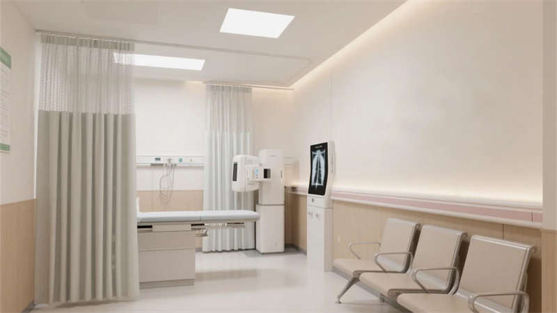 該社區(qū)醫(yī)院設(shè)計(jì)以現(xiàn)代簡(jiǎn)約理念為核心,營(yíng)造出溫馨而高效的醫(yī)療環(huán)境。整體空間強(qiáng)調(diào)人性化布局,接待大廳寬敞明亮,弧形接待臺(tái)與自然光結(jié)合,營(yíng)造親切的第一印象。候診區(qū)舒適寧?kù)o,沙發(fā)與書架的點(diǎn)綴減輕等待焦慮,診室則注重隱私與專業(yè)感,柔和色調(diào)提升患者信任。藥房設(shè)計(jì)簡(jiǎn)潔清晰,便于快速取藥,急診室布局高效,確保緊急響應(yīng)流暢?;?yàn)室和影像科突出功能性,無(wú)菌環(huán)境與設(shè)備集成保障精準(zhǔn)診療,康復(fù)區(qū)開(kāi)放通透,綠植與自然光促進(jìn)身心恢復(fù)。所有區(qū)域統(tǒng)一運(yùn)用中性色調(diào)、木質(zhì)元素和流線型家具,強(qiáng)化視覺(jué)連貫性,同時(shí)融入充足采光與綠意,打造舒緩氛圍。設(shè)計(jì)不僅提升醫(yī)療體驗(yàn),還呼應(yīng)了合肥的城市人文特色,為居民提供一處安心、便捷的健康港灣。