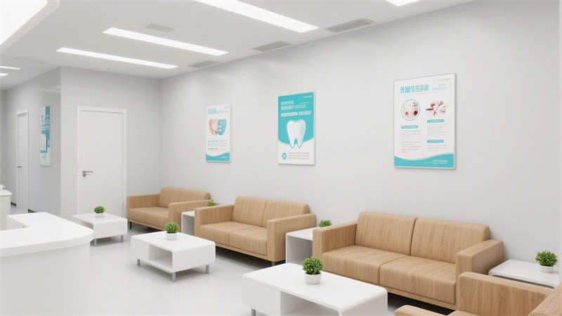 在視覺呈現(xiàn)上,以低飽和度的中性色為基礎(chǔ),搭配局部溫潤的軟裝元素,營造出專業(yè)且溫和的氛圍,緩解患者就診時的緊張情緒。材質(zhì)選擇上,優(yōu)先考慮易清潔、耐磨損的環(huán)保材料,兼顧實用性與健康需求。整體設(shè)計無冗余裝飾,以簡潔的形態(tài)承載功能,讓空間既符合口腔醫(yī)療的專業(yè)屬性,又傳遞出舒適、安心的體驗感。