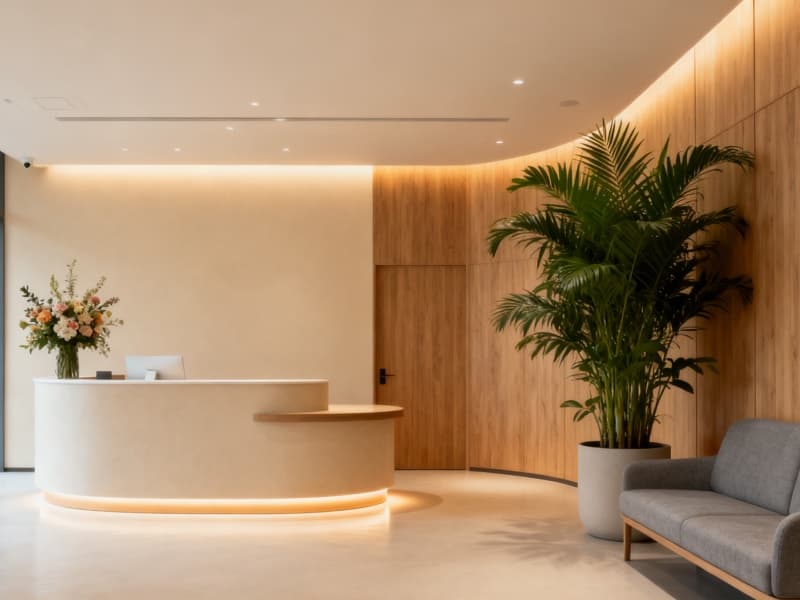 本設(shè)計以康養(yǎng)療愈為核心,聚焦休養(yǎng)人群的身心需求,打造兼具醫(yī)療專業(yè)性與生活溫度的4000平空間。整體風(fēng)格摒棄冰冷的工業(yè)感,以淺米、原木、柔粉等溫潤色調(diào)為基礎(chǔ),搭配柔和的光線與自然綠植,構(gòu)建舒適安心的環(huán)境氛圍。